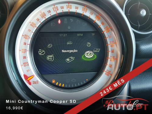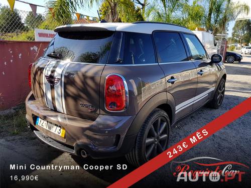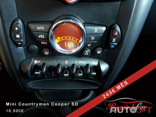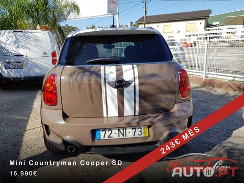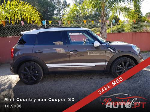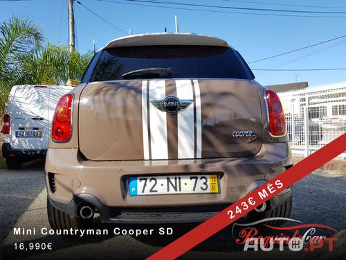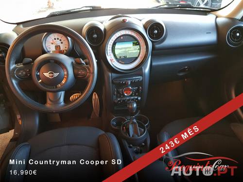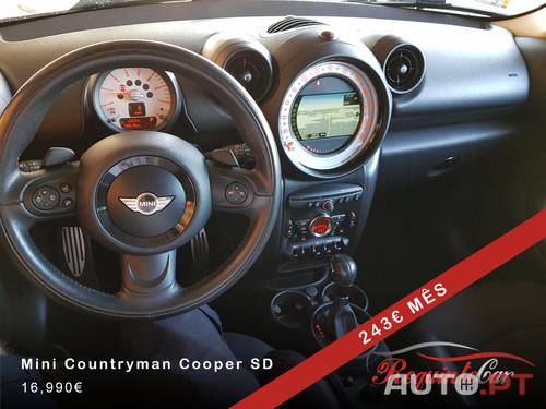 Mini Countryman Cooper SD com o motor BMW 2.0 de cilindrada com 143CV de potencia em bom estado geral e carregado de equipamento destacando: Pack Desportivo S de origem, faróis Bi-Xénon, jantes 18", volante multifunções com patilhas das velocidades, caixa automática, GPS, modo Sport, ar condicionado automático, Sistema multimédia bastante completo com Mini connected/telefone/CD/AUX/USB/Configurações/Rádio..., todos os vidros eléctricos e espelhos reguláveis e rebativeis electricamente...
