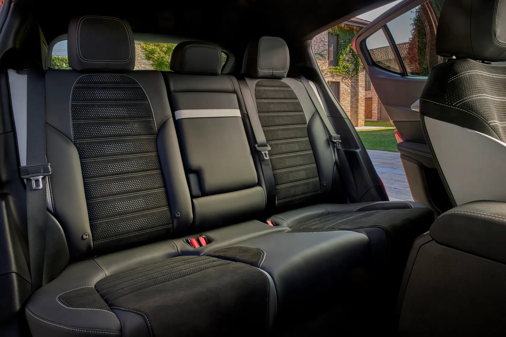 O habitáculo do novo Tonale combina materiais premium com um layout centrado no condutor. As novas opções de estofos incluem pele vermelha com costuras coordenadas e Alcântara bicolor preto e branco, com detalhes inspirados na tradição artesanal italiana.