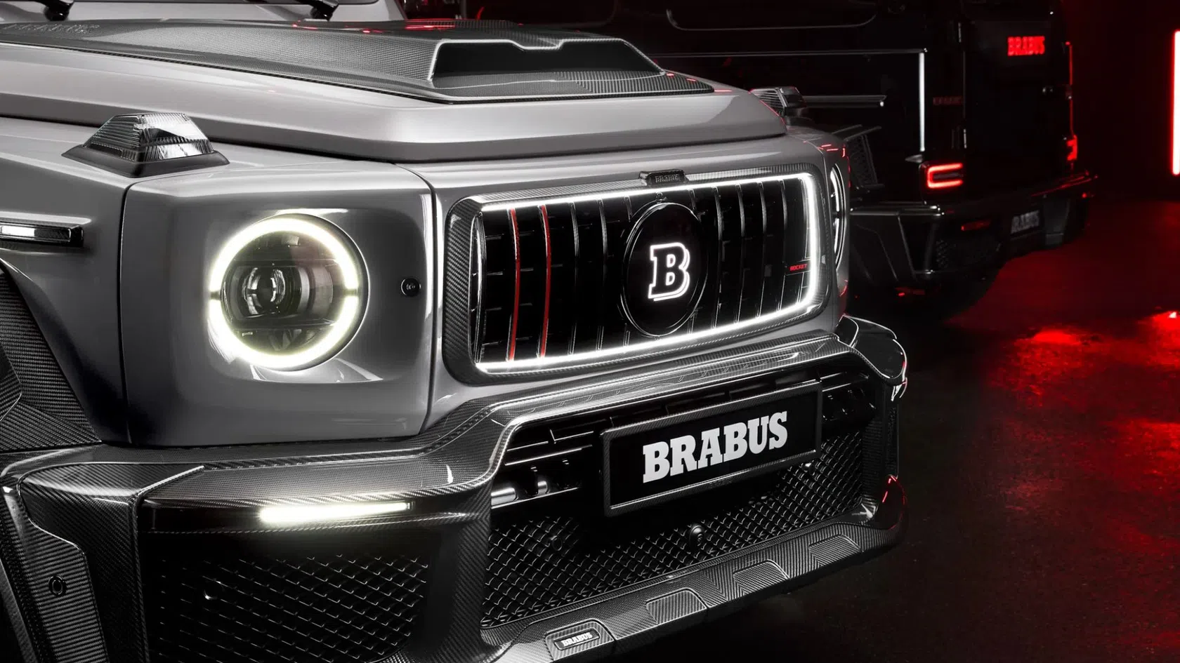 Exteriormente, o modelo distingue-se por um conceito integral em fibra de carbono, aplicado a vários elementos da carroçaria. Entre os destaques estão a pintura “Stealth Gray” e a alternativa “Signature Black”, bem como a grelha frontal iluminada com logótipo BRABUS, um elemento visual que se mantém ativo mesmo em condução noturna.