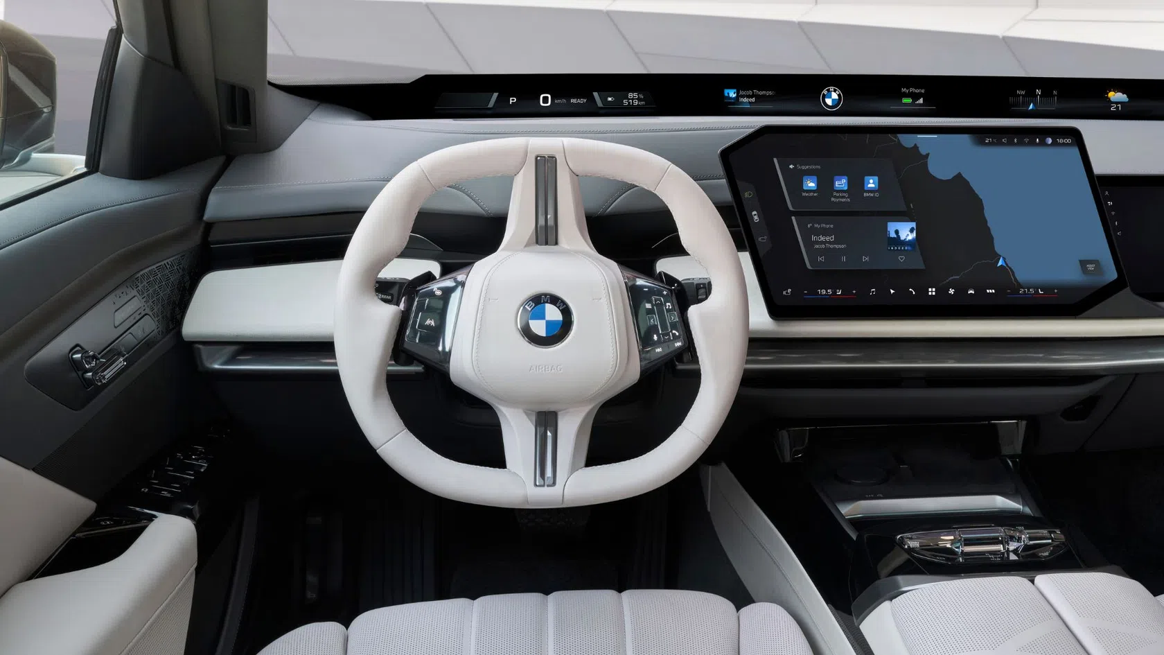 O habitáculo do novo BMW Série 7 foi redesenhado para combinar luxo, conforto e tecnologia digital. A grande novidade é o BMW Panoramic iDrive com BMW Operating System X, sistema que projeta informação ao longo da base do para-brisas e trabalha em conjunto com o ecrã central de 17,9 polegadas.