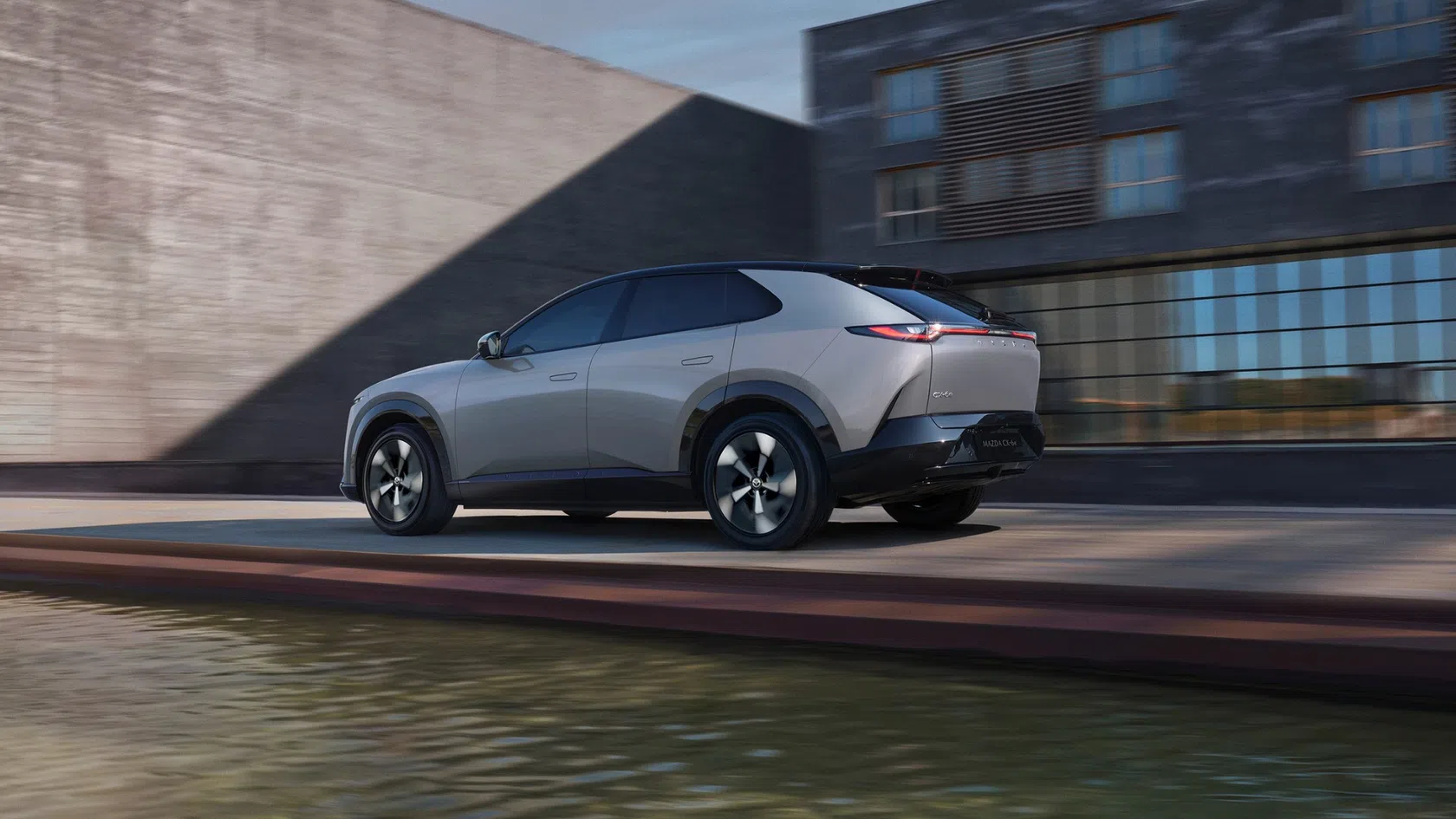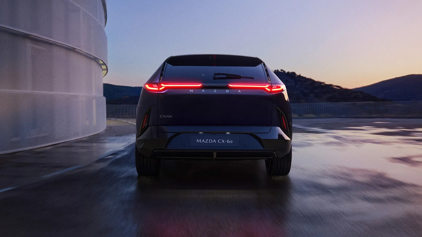 O Mazda CX-6e aplica uma evolução da linguagem de design Kodo - Soul of Motion, adaptada à mobilidade elétrica. As proporções atléticas, a silhueta fluida e os detalhes aerodinâmicos foram pensados para equilibrar eficiência e presença visual.