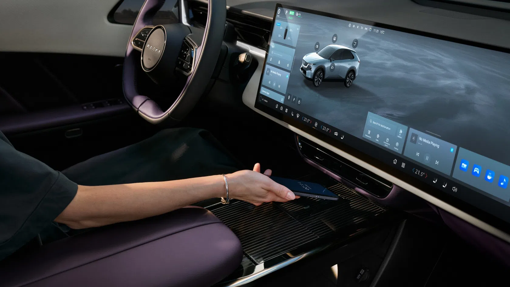 No interior, o CX-6e inspira-se no conceito japonês de ma, que valoriza o espaço vazio e a harmonia entre elementos. O habitáculo foi concebido para proporcionar uma sensação de serenidade, com materiais cuidadosamente selecionados e uma arquitetura limpa.