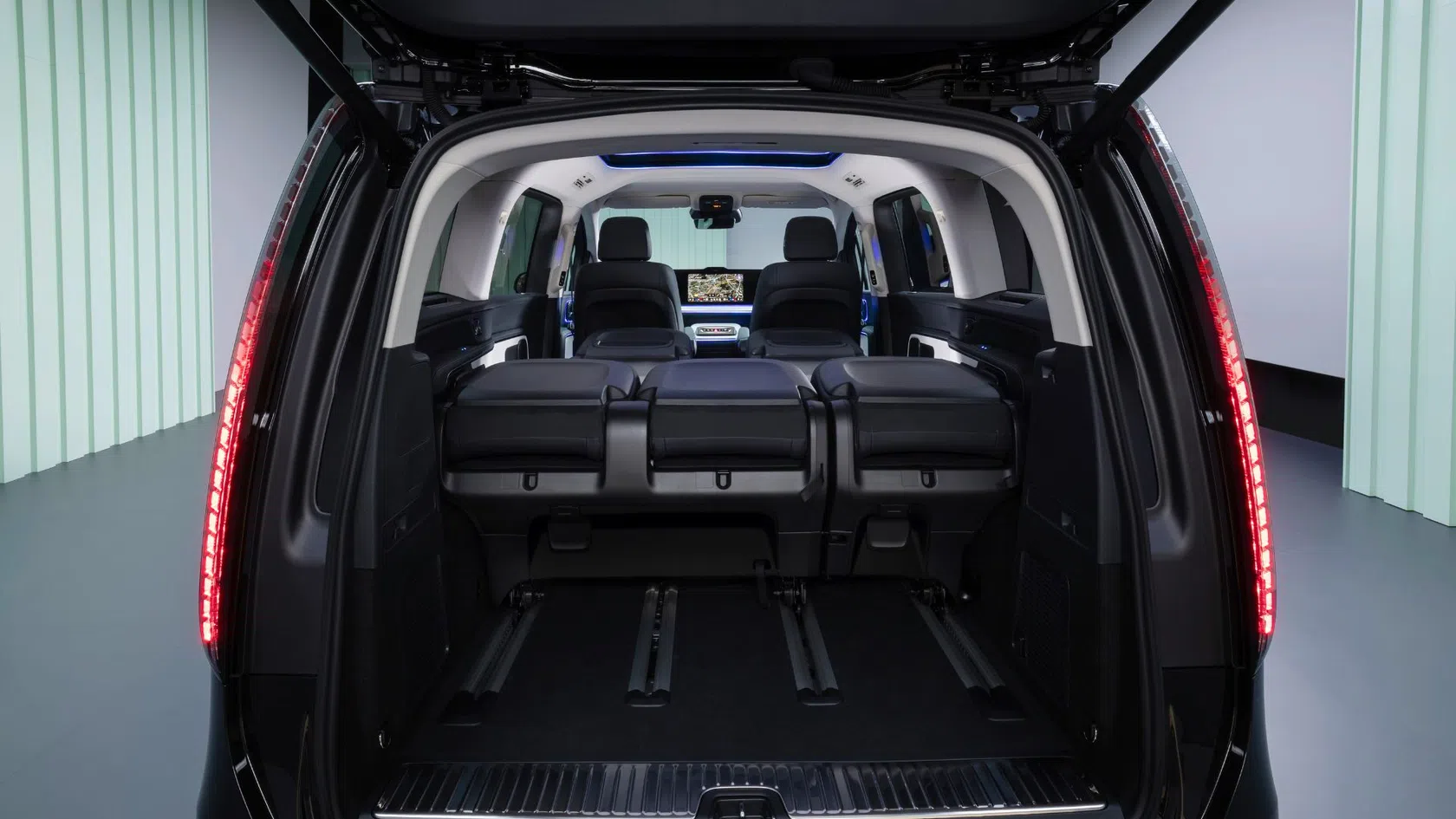 O interior foi pensado para proporcionar uma experiência semelhante à de uma “grand limousine”, mantendo simultaneamente a modularidade típica de um veículo multiuso.
